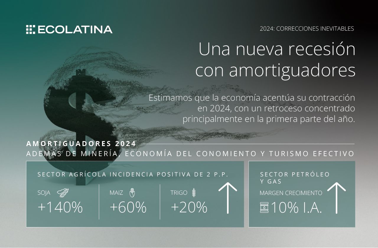 En este contexto, la economía pasará de verse mayormente afectada por problemas de oferta (como ocurrió en 2023) a sufrir en mayor medida la contracción en la demanda. Dejando atrás el efecto “los pesos queman”, las correcciones de las principales variables macroeconómicas y la caída del salario real implican un marcado freno al consumo frente a “pesos que no alcanzan”.